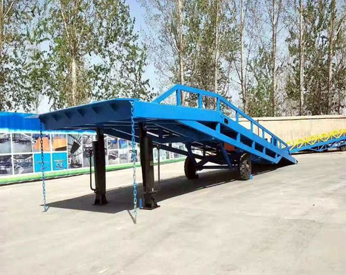 棗莊登車橋-集裝箱裝卸過橋-裝車斜坡登高裝貨叉車液壓登車橋-移動(dòng)式液壓登車橋應(yīng)用于無裝卸設(shè)備的貨臺(tái)及流動(dòng)裝卸場(chǎng)所,是與叉車配合使用的貨物裝卸輔助設(shè)備。借助該設(shè)備,叉車能直接駛?cè)肫囓噹麅?nèi)部進(jìn)行批量裝卸作業(yè)。只需單人操作,不需要?jiǎng)恿﹄娫矗纯蓪?shí)物的安全快速裝卸。即可使您減輕勞動(dòng)強(qiáng)度,又能成倍提高裝卸作業(yè)效率,加快物料流通速度,獲取更大經(jīng)濟(jì)效.臺(tái)面使用特制的菱形網(wǎng)絡(luò)板有可靠的強(qiáng)度,能保證長(zhǎng)期使用而。它的菱形網(wǎng)狀結(jié)構(gòu),充分保證了防滑性能,使叉車有更好的爬坡性和可操作性。即使在雨、雪罐子。仍能保證正常使用。